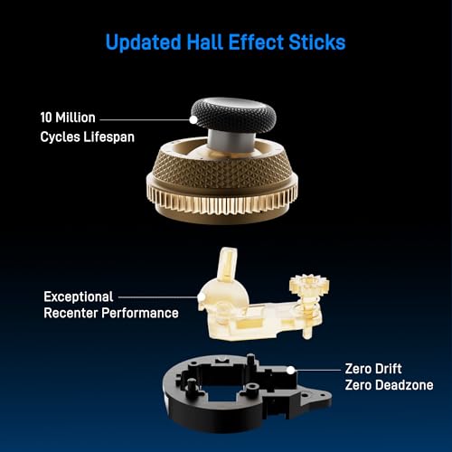 - Updated Hall Effect Sticks: The internal components of the joystick are updated hall effect sensors, exceptional recenter, zero drift, zero deadzone, 10 million cycles lifespan, enhance gaming experience significantly.